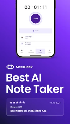 MeetGeek on edistyksellinen tekoälypohjainen ääninauhuri ja muistiinpanosovellus. Se litteroi puheen tarkasti tekstiksi ja tallentaa ääntä vaivattomasti yli 50 kielellä, helpottaen tiedon hallintaa ja kokousten seurantaa.
