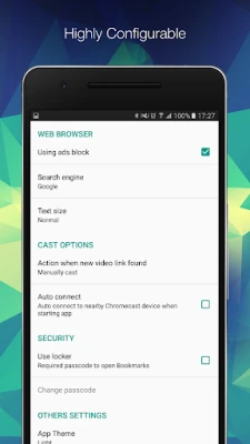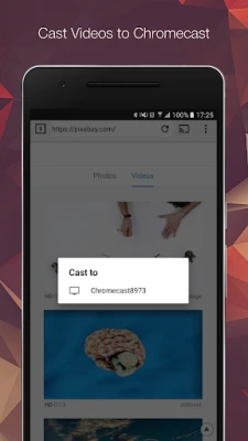 Kun selaat verkkosivustoja EZ Web Video Cast -sovelluksella, se tunnistaa älykkäästi ja automaattisesti sivuilta löytyvät videolinkit. Yksinkertaisella toimenpiteellä voit lähettää valitsemasi videon vaivattomasti Chromecast-laitteeseesi, jolloin se alkaa toistaa sisältöä suoraan televisiossasi. Sovellus tarjoaa täyden hallinnan katselukokemukseesi: voit hallita toistoa, keskeyttää sen ja säätää äänenvoimakkuutta suoraan mobiililaiteltasi. Lisäksi sen monipuoliset selaintoiminnot, kuten kätevät kirjanmerkit, oletushakukone (Google), tehokas mainosten esto ja mukautettava kotisivu, tekevät selaamisesta entistäkin miellyttävämpää.