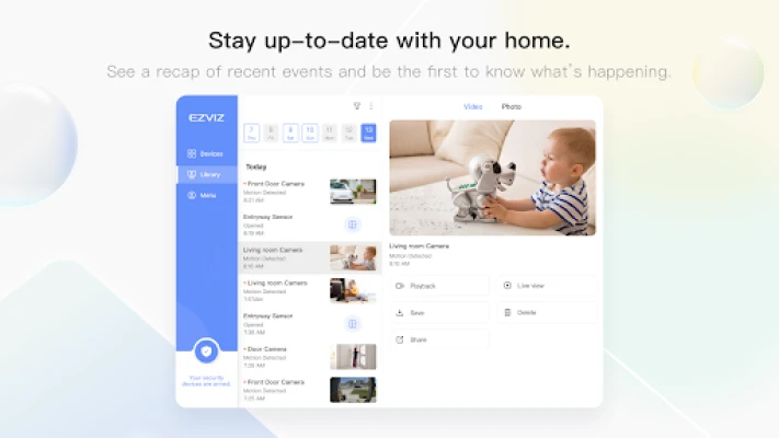 EZVIZ hd tarjoaa älykkään ratkaisun kotisi ja yrityksesi turvallisuuteen. Hallitse EZVIZ-valvontakameroita ja muita älylaitteita etänä mistä päin maailmaa tahansa. Katso HD-suoratoistoa, vastaanota liiketunnistushälytyksiä ja varmista rakkaidesi turvallisuus helposti.