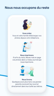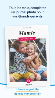 Neveo on ainutlaatuinen sovellus, joka muuttaa perheesi digikuvat kuukausittaiseksi valokuvapäiväkirjaksi. Lähetä valokuvia helposti puhelimestasi, ja Neveo kokoaa, tulostaa ja toimittaa kauniin lehden suoraan isovanhemmillesi. Yhdistä perheesi ja jaa unohtumattomia muistoja vaivattomasti.