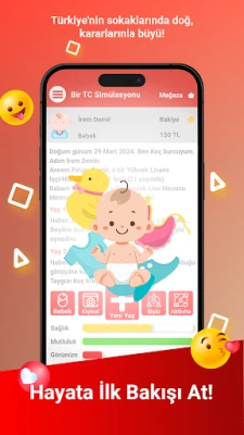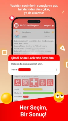 TC Simülasyonu on ainutlaatuinen tekstipohjainen elämäsimulaattori, joka sijoittuu Turkin aikuiselämään. Tee valintoja, jotka muokkaavat kohtaloasi ja näe päätöstesi vaikutukset menestykseesi. Elä unelmiesi elämää tai aloita kokonaan uusi polku. Tutki elämän eri vaiheita omilla ehdoillasi.