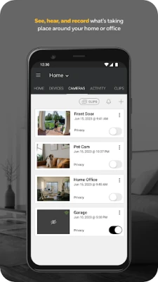 Total Connect 2.0 tarjoaa kattavat työkalut kiinteistösi hallintaan. Kytke turvajärjestelmäsi helposti päälle tai pois päältä. Tarkastele korkearesoluutioista live- tai tallennettua videokuvaa useista kameroista, tai juttele etuovellasi olevien vieraiden kanssa, ikään kuin olisit itse paikalla. Voit myös avata tai lukita ovia, sytyttää tai sammuttaa valoja ja säätää Resideon termostaattisi lämpötilaa mukavuutesi mukaan. Lisäksi voit avata ja sulkea autotallin oven etänä, varmistaen, että kiinteistösi on aina suojattu ja juuri sellainen kuin haluat sen olevan.
